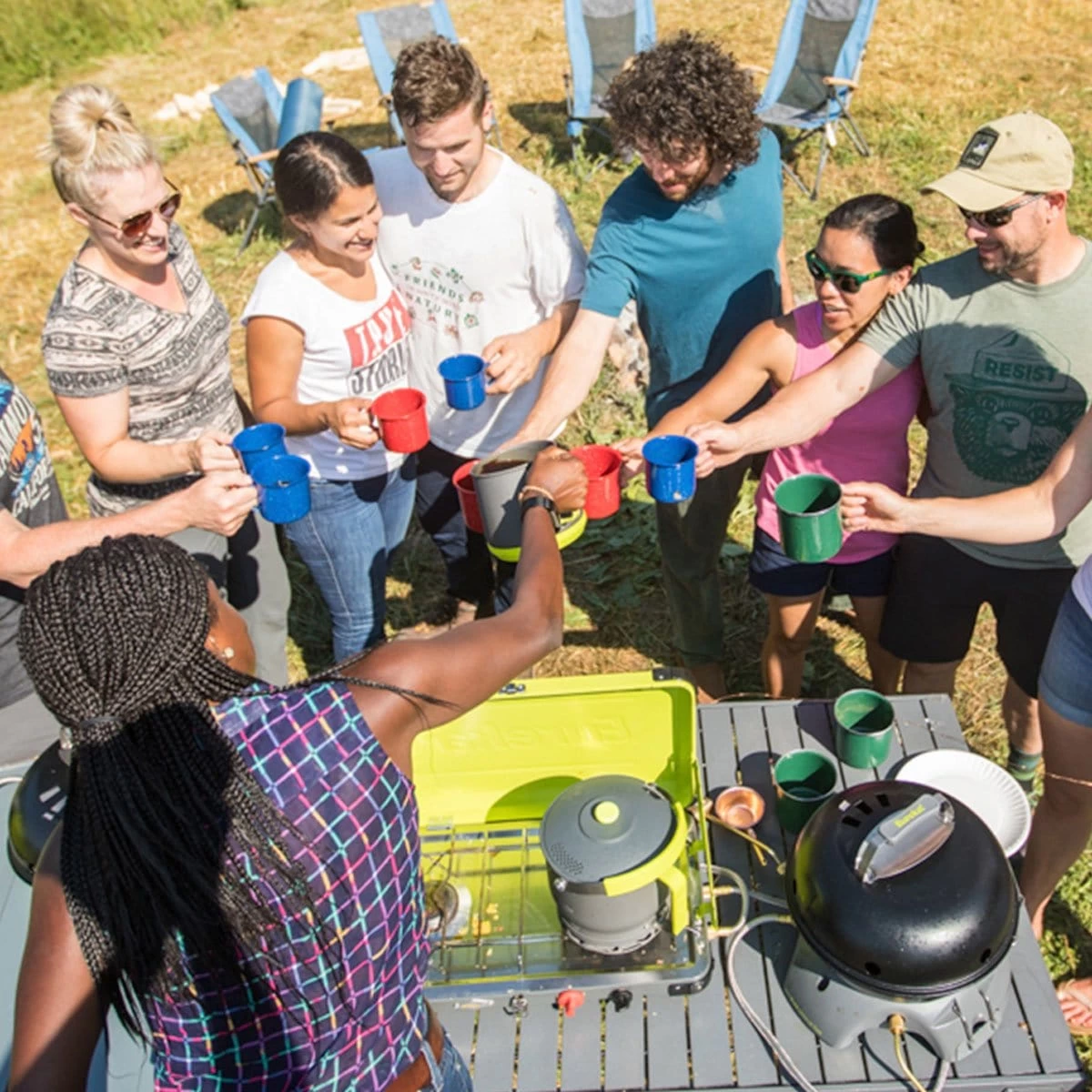 - Nests together for easy transport and storage while brewing quality coffee for the whole crew quickly, and cleaning up in a snap.