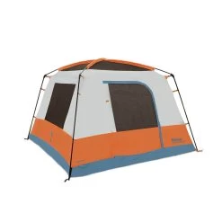 We bring the whole family to stay inside the Eureka Copper Canyon 12-person Tent. Two rooms separate the kids from the adults, while vertical walls and detachable awnings maximize available space. Cabin tents of this size can get stifling, but six large zippered windows allow for serious airflow, and when you recline on your cot at night, Recline StomShield clear panel skylights allow for stargazing. This twelve-person freestanding tent is like your own personal five-star hotel, just without 2 AM room service.