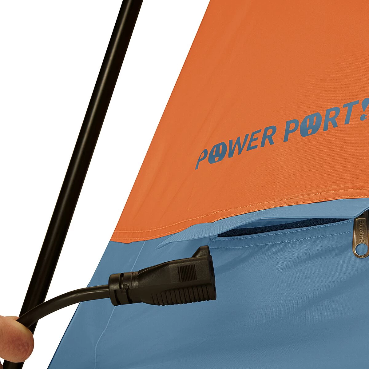 - Thread a power cord inside the tent through dedicated zippered port