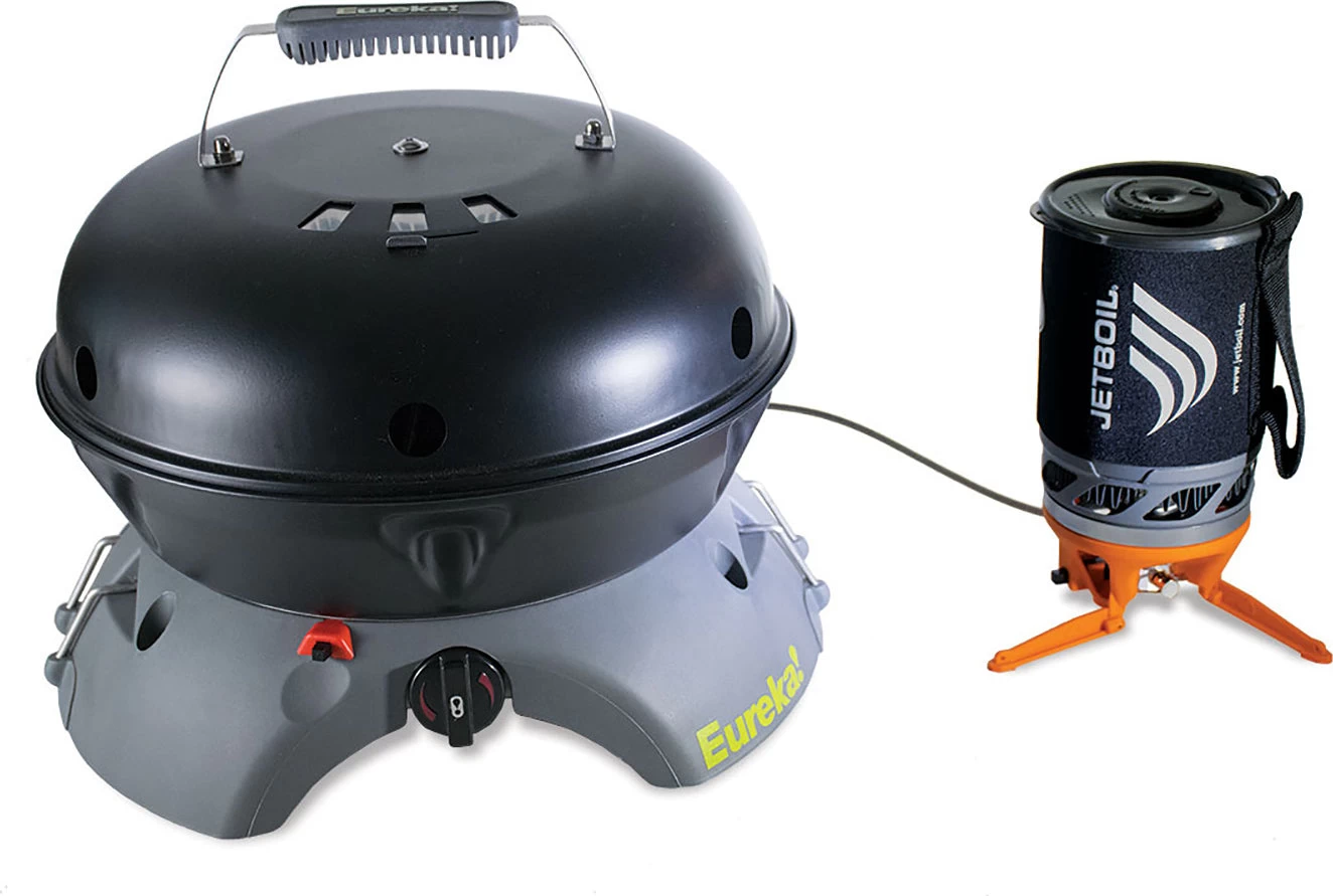 A griddle top for pancakes or panini sandwiches reverses to a grill surface for burgers or portobellos—or functions as a stove for boiling water and sautéing. With a cast iron cook surface, advanced simmer control and a JetLink port, you can add additional Eureka! and Jetboil stoves.