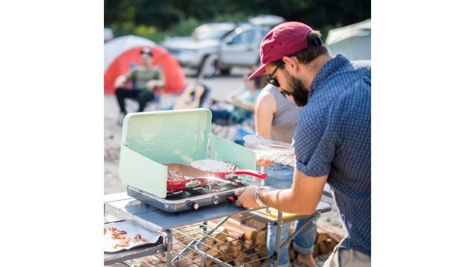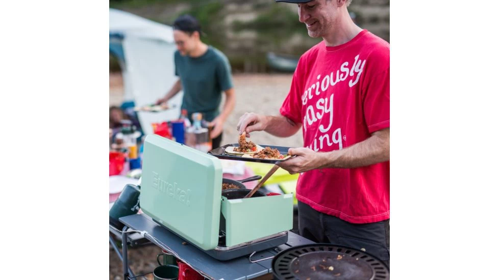 Cook the perfect meal for the crew on camping weekends with the Ignite Camping Stove constructed with rugged thick-gauge steel to deliver many years of use in the outdoors. Great for small groups the Ignite offers an innovative simmer control for high-precision flame adjustment; 10000 BTU burners go from a light simmer to full output.Features:Constructed with rugged thick-gauge steel to deliver many years of use in the outdoors Offers an innovative simmer control for high-precision flame adjustment; 10000 BTU burners go from a light simmer to full output Push-button ignitor allows for fast easy starts while the stove’s compact size fits two 10-inch pans to create your campsite meals and a stainless-steel drip tray offers rust-free performance and easy cleanup 18.5 inches long by 12.8 inches wide by 4 inches tall; weighs 10 pounds. Requires propane fuel to operate (not included) and offers a 90-minute burn time Dependable latches keep the lid secure during transport JetLink compatibility allows you to connect from the output on other Eureka! stoves for camp kitchen flexibility (the Ignite must be the last line in a JetLink chain of linked stoves it cannot be the starting point) Compact size is perfect for small groups Due to flammable item shipping restrictions we cannot sell fuel canisters online; they are available at REI retail stores Includes standard connection for 1 lb. propane cylinders. (20 Lb. Propane tank hose sold separately)![]()