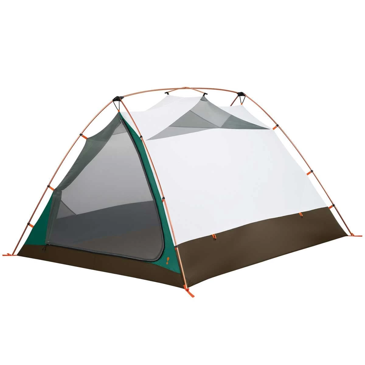 The Timberline SQ Outfitter 4 tent from Eureka sleeps 4. The SQ Outfitter 4 uses the 6-pole A-frame construction utilizes strong, durable DAC Featherlite™ aluminum and is a classic tent updated with the latest in frame technology. The Timberline series has been famous for years as the Scout’s tent of choice, Why? Because of ease of set up, durability and reliability. The frame is so tough that Eureka began to compare it to the strength and durability of the giant Sequoia tree and the name stuck (SQ). A stronger, thicker ridge pole and the SQ frame’s spreader pole not only increase overall frame strength but adds more usable square footage to the interior of the tent. Improved ventilation with the addition of 2 generous roof vents mean long humid tent nights will be much more comfortable than in the past. In addition Eureka has lengthened the side of the fly for even more coverage and added vestibule wings to the front of the tent to protect the door from weather. Some of the good old parts remain like the use of RipStop materials for strength and worry free use. This is a classic tent and it just got better.